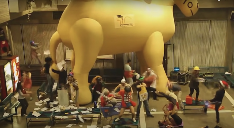 Im Jahr 2013 eroberte der Harlem Shake das Internet. Auf den ersten Blick sieht alles nach einer alltäglichen Situation aus, während im Hintergrund der namensgebende Song des US-Trap-Musikers Baauer läuft. Im Mittelpunkt der Harlem-Shake-Videos ist eine einzelne maskierte Person, die wild tanzt, während andere unbeteiligt ihrer Tätigkeit nachgehen. Beim Drop des Beats beginnt eine wilde Tanzparty, mit äußerst skurrilen Verkleidungen. (Screenshot: Youtube)
