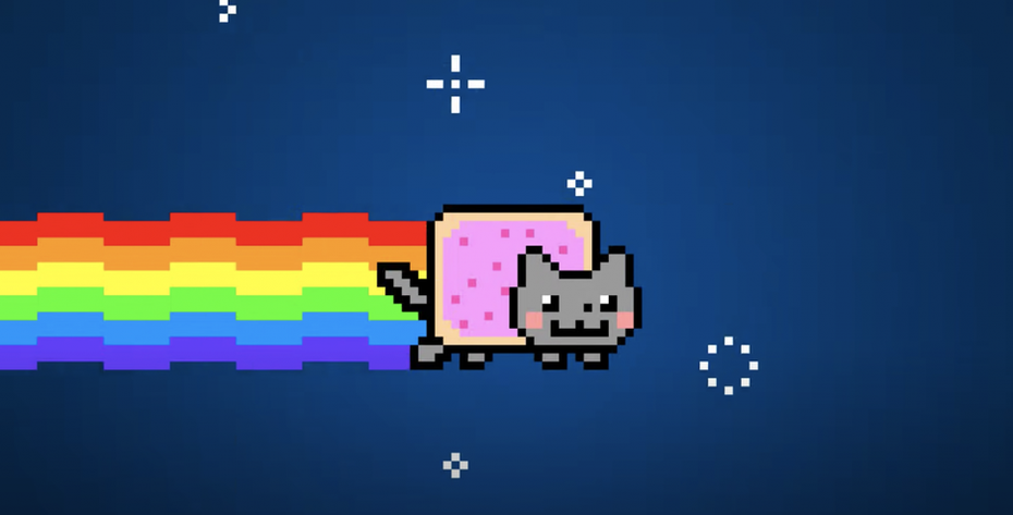 Nyan Cat ist eine 8‑Bit-Animation einer Katze, deren Körper aus einer Kirsch-Pop-Tart besteht und die durch den Weltraum fliegt, während sie einen Regenbogen hinter sich herzieht. Was absurd klingt, wird noch absurder, wenn einem bewusst wird, dass die Zehn-Stunden-Version des ursprünglich dreiminütigen Videos bei Youtube mittlerweile elf Millionen Mal aufgerufen wurde. Das Original steht aktuell übrigens bei 188 Millionen Aufrufen. (Screenshot: Youtube)