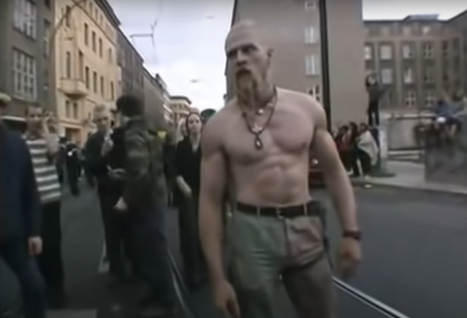 Der Techno Viking gehört zur Oldschool-Fraktion der viralen Internethits. Bereits 2006 schlug seine große Stunde im Netz. Dabei ist das Video des muskelbepackten Wikingerverschnitts schon deutlich älter. Es entstand im Juli 2000 auf dem Berliner Technofestival Fuckparade, einem Gegenentwurf zur damals beliebten Loveparade. (Screenshot: Youtube)