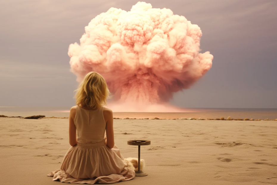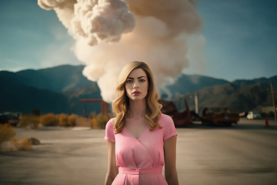 Barbie und ein leicht rosaner Atompilz am Horizont, schön.