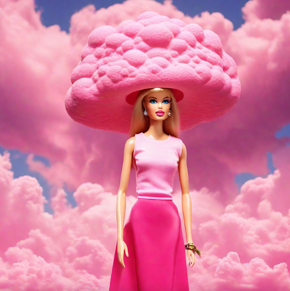 Und Barbie kann den pinken Atompilz durchaus als Hut tragen.