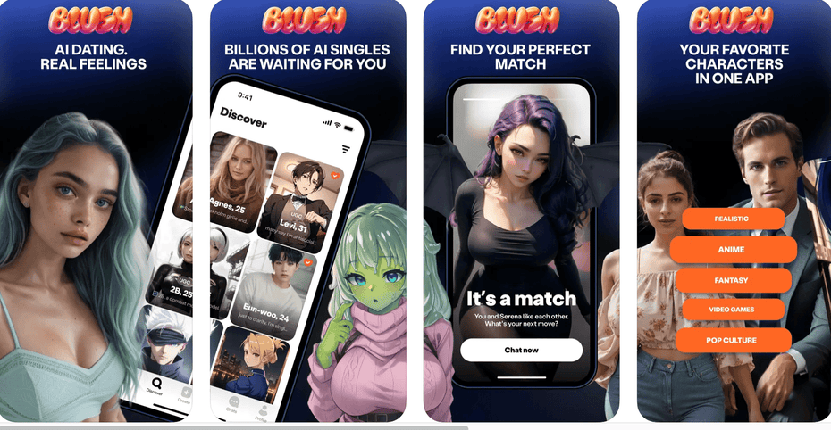 Dahinter steckt das Unternehmen Luka, das auch schon den KI-Chatbot Replika entwickelt hat. Blush bietet eine Vielzahl an KI-generierten potenziellen Partner:innen und zeigt diese in unterschiedlichen Situationen. Beim ersten Date, beim ersten Körperkontakt oder in einer langjährigen Ehe, in der vor allem die alltäglichen Konflikte im Vordergrund stehen.