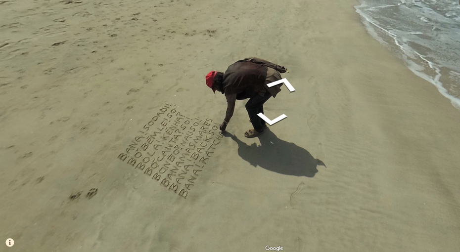 Glücklicherweise wurde die Schrift von Google Maps erfasst, bevor die Wellen die Nachricht weggewischt haben.