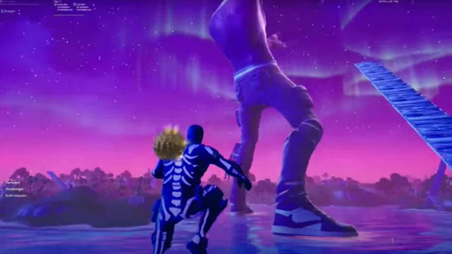 Travis Scott hat im April 2020 ein Konzert im Spiel „Fortnite“ gegeben – das sorgte für einen Nutzer:innen-Rekord. Dabei trug er Nike-Sneaker, genauer: ein Modell, dass er in Kollaboration mit Nike entworfen hatte. Dass die Figur von Scott während des Konzerts riesig war und die Sneaker damit fast so groß wie die normalen Charaktere der Spieler:innen, war auch ganz gut für die Promo. (Screenshot: t3n/ Krench Royale via Youtube)