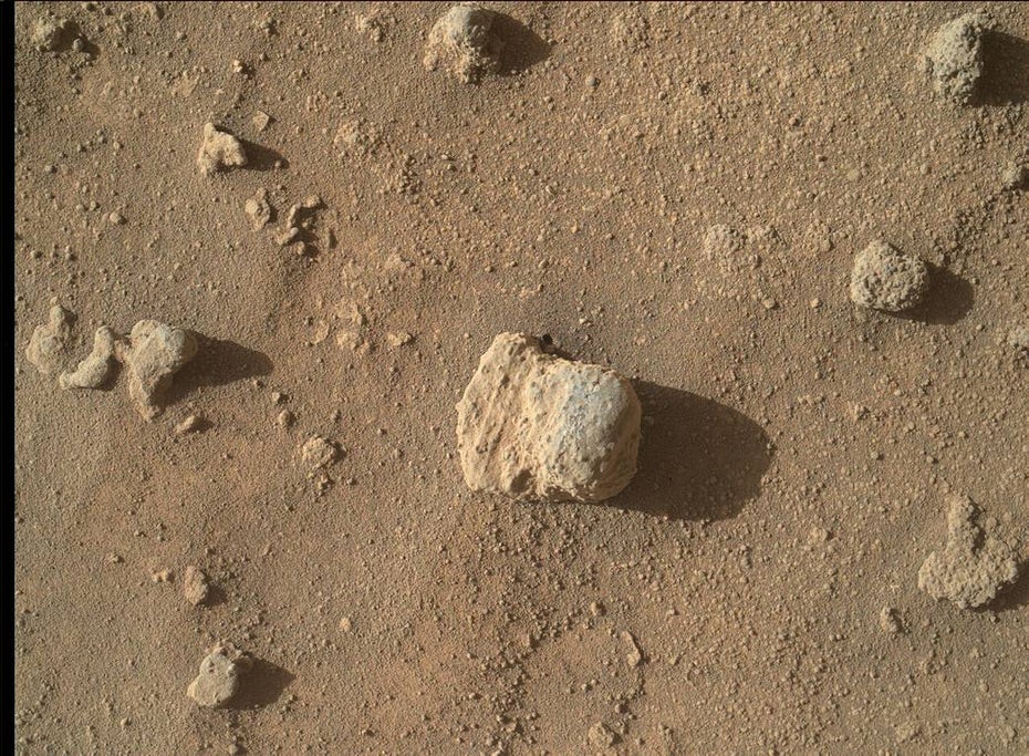 Der Nasa-Rover Curiosity stößt auf dem Mars auf einen seltsamen Stein. Der passt so gar nicht in seine Umgebung, und das Rätselraten um seine Herkunft beginnt. Mehr Infos dazu findest du im Artikel.