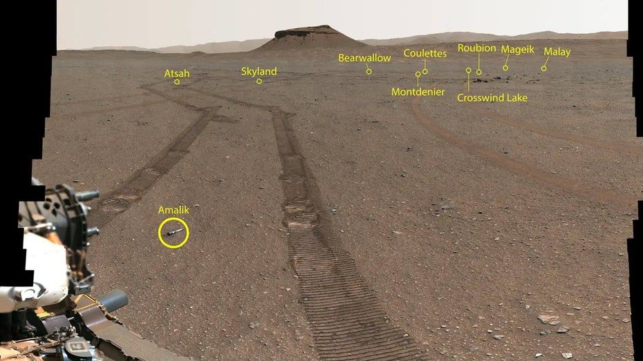 Der Perseverance-Rover der US-Raumfahrtbehörde Nasa hat das von ihm angelegte Probendepot auf der Marsoberfläche fotografisch dokumentiert. Das Probenpanorama wurde aus über 300 Einzelbildern zusammengefügt. Mehr Infos findet ihr in diesem Artikel.