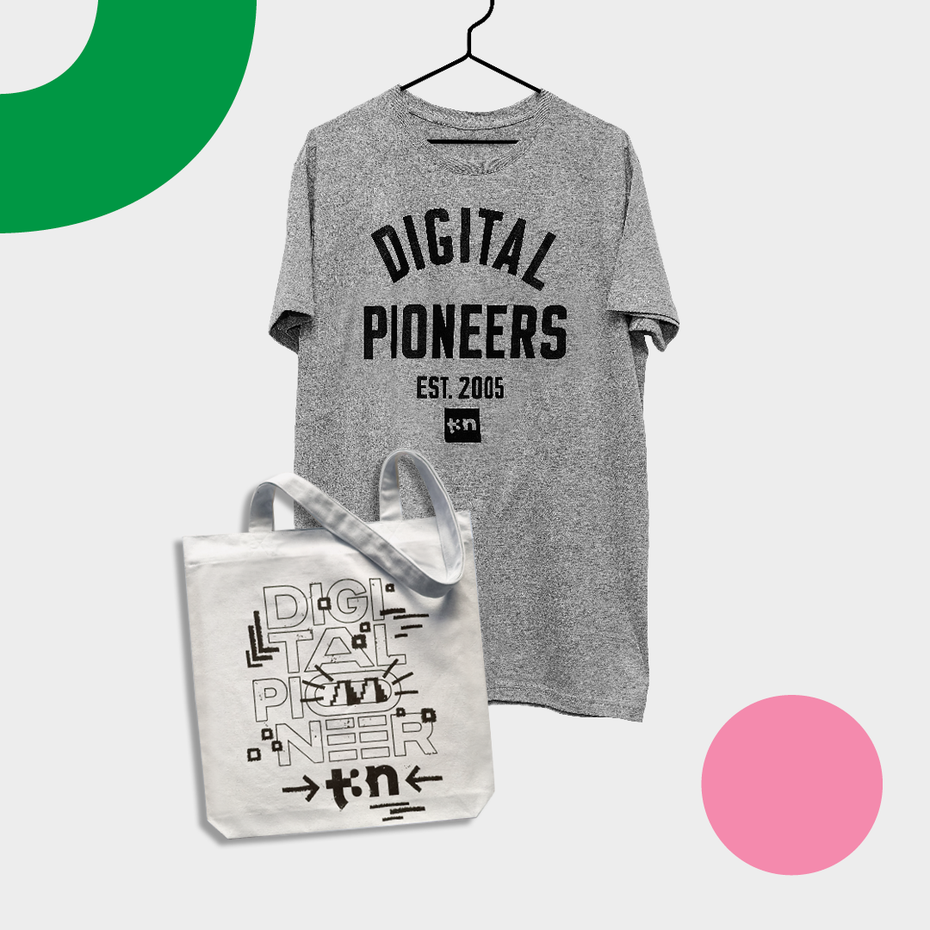 Die perfekte Ausstattung für alle Digital Pioneers: der exklusive t3n-Jutebeutel und das beliebte Pioneers-Shirt.