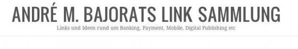 „André M. Bajorats Link Sammlung“ (ambajorat.wordpress.com) präsentiert jeden Tag interessante Verweise zu Themen wie Banking, Payment sowie Digital Publishing. Wer will, bekommt die Links samt Teaser in der optisch ansprechenden Form einer Online-Zeitung geliefert.
