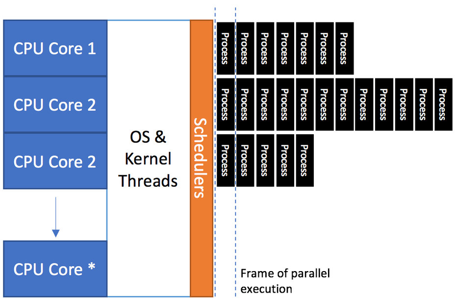 In Erlang wird jede Aufgabe von sparsamen, autarken User-Space-Prozessen abgearbeitet: Für stark verteile Applikationen ein enormer Stabilitätsvorteil. Whatsapp und zum Teil auch der Facebook Messenger setzen darauf. (Abbildung: Frank Hinkel, Jean Michel Malatray)