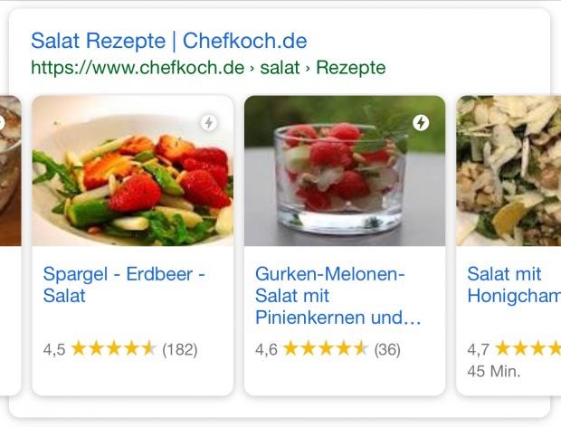 AMP-Karussell innerhalb eines Snippets: Nutzer können innerhalb einzelner AMP-Seiten navigieren. (Screenshot: google.de)