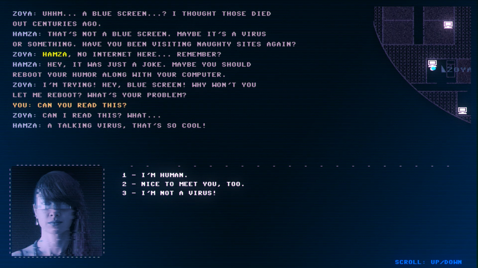 Zein ist Grafikdesigner, Kim Informatikerin. „Wir haben zusammen am Cologne Game Lab weiterstudiert“, sagt Kim. „Dort gab es ein Rapid Prototyping, bei dem wir sechs Wochen lang jede Woche ein Spiel entwickeln sollten.“ In einer dieser Wochen entstand der Prototyp von „Code 7“. So richtig viel geschlafen haben die beiden in jener Zeit nicht. Aber sie brannten beide für die Idee, die Auseinandersetzung mit gesellschaftlichen Themen wie dem Verhältnis von Mensch und Maschine in den Mittelpunkt eines Spiels zu stellen.