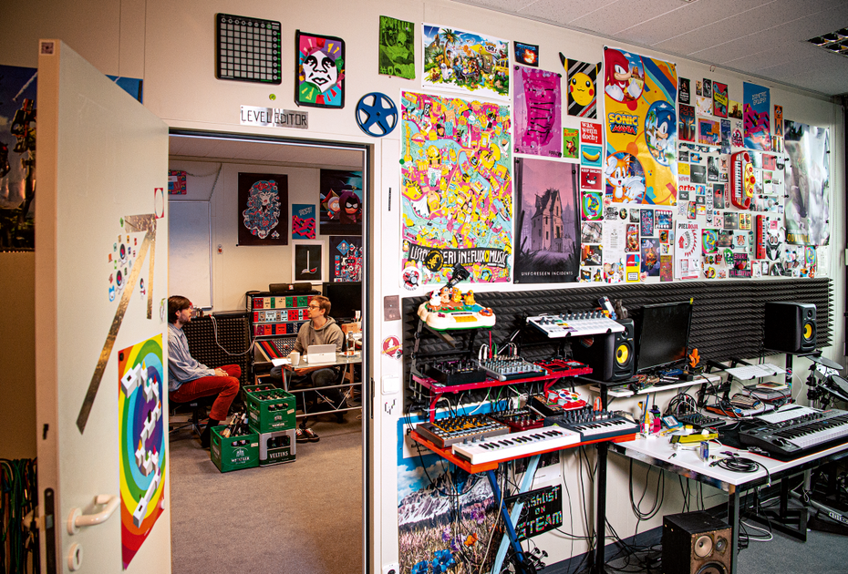Bei Ludopium spielt Musik eine wichtige Rolle, kein Wunder: Das Erstlingswerk ist ein Rhythmusspiel. Die Musikwand im Büro vermittelt noch am ehesten den Flair eines Indie-Entwicklerstudios. (Foto: Melanie Grande)