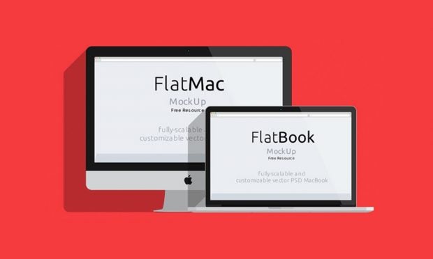 Auch Pixeden ist eine Quelle für hochauflösende Mockups und Wireframes. Die Photoshop-Mockup-Datei für iMac und Macbook gibt es bei Pixeden im bunten Flat-Stil. Neben den typischen Apple-Produkten gibt es auch eine Menge weiterer Freebies und Mockups. In der PSD-Datei befinden sich zusätzliche einzelne Vorlagen.