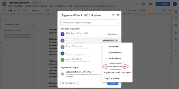6. Google Drive: Zugriffe zeitlich begrenzt freigeben