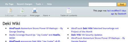 DekiWiki interessiert mich sehr, ist aber leider wegen der hohen Anforderungen nicht auf Shared Hosting Servern zu installieren. Genau wie alla Java-Wikis. Und das Look&Feel der JavaScript-Wikis finde ich grauenvoll.