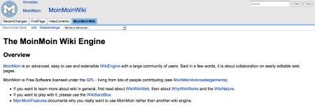 @MoinMoinWiki: Die Verdopplung von „Moin“ zu „MoinMoin“ entspricht nicht nur der „WikiWiki-Manier“ sondern in einigen Gebieten Norddeutschlands ist dieses doppelte „Moin“ der übliche Gruß. Nur so nebenbei..