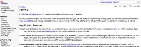 Das PmWiki – vom Namen her leicht zu verwechseln mit dem Wiki-Hostinganbieter PbWiki – ist ein von Patrick Michaud im Jahre 2002 veröffentlichtes Wiki auf PHP-Basis. Besonders ist, dass für jede neue Wikiseite auch eine neue Seite auf dem Server angelegt wird. Das kann vor allem dazu genutzt werden, relativ leicht eine Offline-Version des Wikis herunterzuladen. Standardmäßig werden keine Datenbanken unterstützt, Plugins können jedoch eine MySQL- oder SQLite-Unterstützung einrichten.