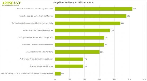 Welche Probleme sehen Affiliates 2018? (Grafik: Xpose360 Trend-Report 2018)