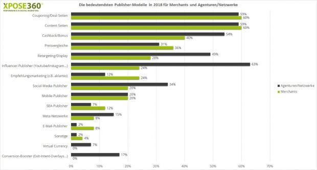 Die wichtigsten Publisher-Modelle aus Sicht von Merchants und Netzwerken. (Grafik: Xpose360 Trend-Report 2018)