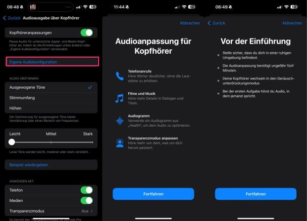 Mit der Audioanpassung könnt ihr den Sound der Airpods besser für eure Ohren optimieren. (Screenshots: t3n)
