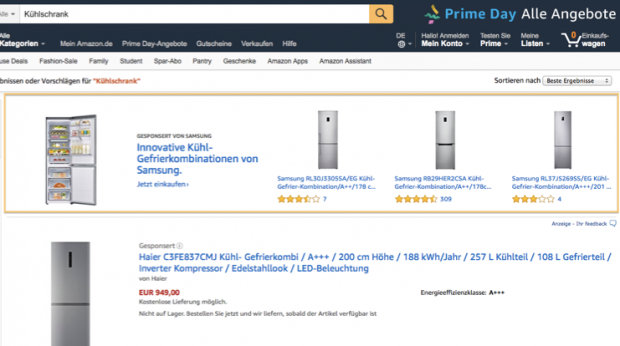 Große Teile der Suchergebnisseite sind mittlerweile mit gesponserten Produkten gefüllt.(Screenshot: Amazon)