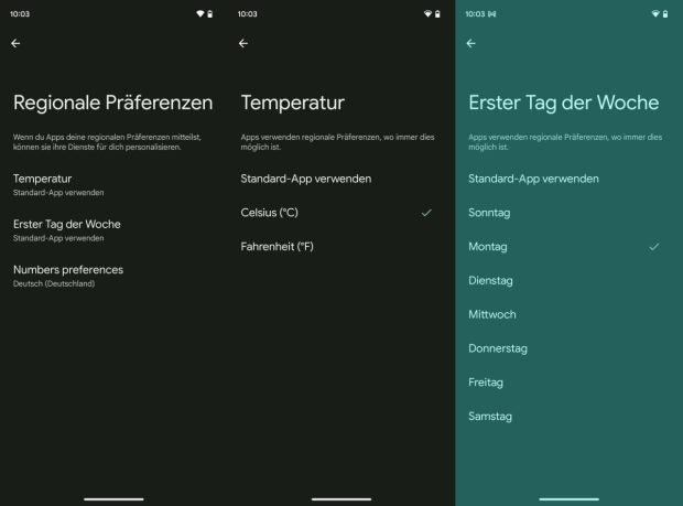 Mit Android 14 integriert Google „Regionale Präferenzen“. (Screenshots: t3n)