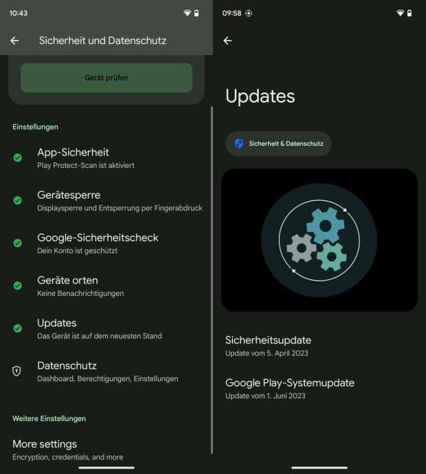 Optisch aufgebohrt hat Google ferner einige Systemeinstellungen wie die Anzeige der Update-Informationen unter dem Punkt Sicherheit und Datenschutz.