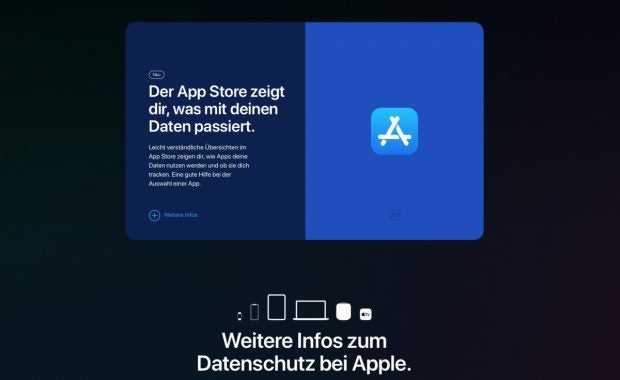 Für Apple-Apps stellt das Unternehmen ebenfalls die selben Informationen auf den entsprechenden Produktseiten des App-Stores zur Verfügung. Es gibt allerdings auch einige wenige Apps, die sich gar nicht über den App-Store installieren lassen, weil sie fest an die Hardware gebunden sind. Die Nachrichten-App ist so ein Beispiel. Für diese Apps will Apple die Informationen zu Privatsphäre und Datenschutz im Internet bereitstellen.