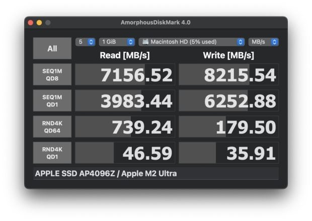 Die SSD im Mac Studio liefert hohe Lese- und Schreibgeschwindigkeiten. (Screenshot: t3n)