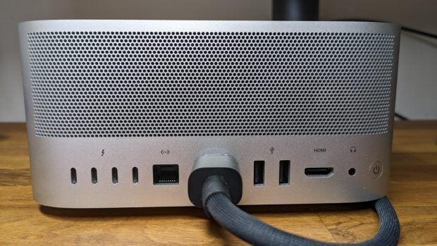 Der Mac Studio von hinten – die Audiobuchse wäre auf der Vorderseite sinnvoller gewesen. (Foto: t3n)