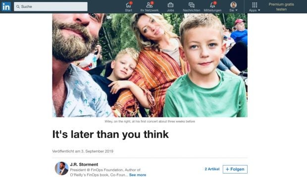 Trauernder Vater J.R. Storment schreibt: „Es ist später als ihr denkt.“ (Screenshot: Linkedin)