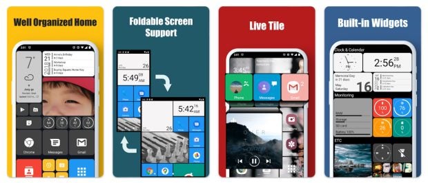 Wer sein Windows Phone vermisst, der sollte einen Blick auf diesen Android-Launcher werfen. (Screenshot: Play-Store / t3n)