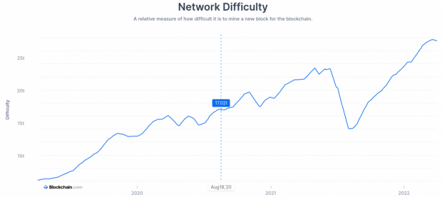 Das Bitcoin-Mining ist nicht nur energielastig, sondern auch weiterhin sehr lukrativ. Mittlerweile sind etwas mehr als 19 Millionen von 21 Millionen möglichen Bitcoins im Umlauf. Eine wichtige Kennzahl beim Bitcoin-Mining ist die Mining-Difficulty. Diese hat nun mit 28,587 Billionen ein neues Allzeithoch erreicht. Die Schwierigkeit des Bitcoin-Netzwerks entspricht der Rechenleistung, die für das Mining von BTC-Blöcken erforderlich ist.