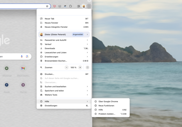 Hier geht ihr auf „Hilfe“ und dann auf „Über Google Chrome“. Wird euch die Version 123.0.6312.86 (Windows) oder .87 (macOS) angezeigt, seid ihr auf der sicheren Seite. Die aktuellste Android-Version endet auf die .80 und Linux-Nutzer:innen achten auf die Endziffer .80. Verwender:innen des Extended-Stable-Release sind mit der Version 122.0.6261.148 bedient.