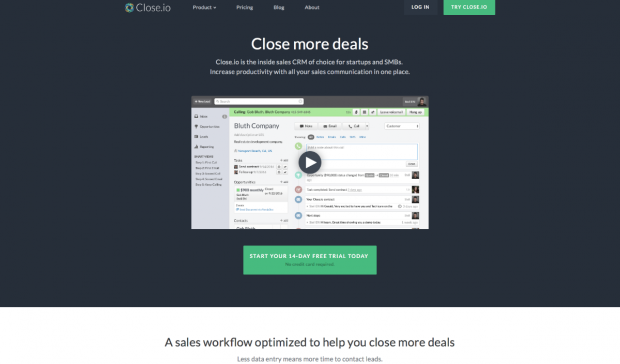 CRM-Systeme: Close.io. (Screenshot: t3n.de)