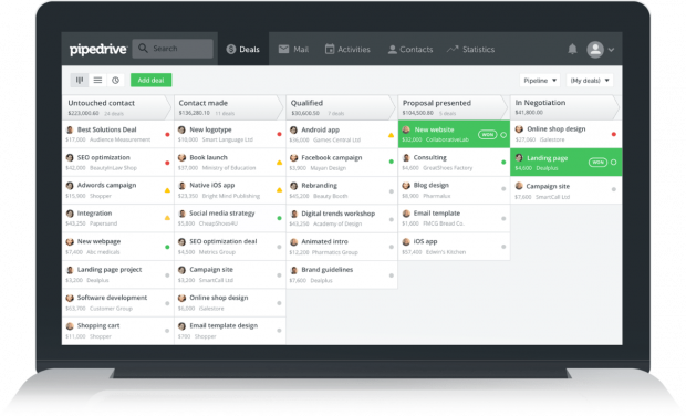 Mit Pipedrive und für zehn US-Dollar monatlich haben Startups ihre Sales immer im Blick. Das CRM setzt vor allem auf eine „Pipeline“ genannte Verkaufsansicht, die alle Kundengeschäfte chronologisch nach ihrem Verkaufsstatus anzeigt. Neben Verkaufsanalysen pro Mitarbeiter werden die notwendigen Kundenkontakte aus externen Diensten wie Google Maps, Calendar oder Drive abgezapft. Somit kann auch der Versand von E-Mails und Rechnungen aus Pipedrive heraus erfolgen.
