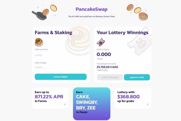 Ein Beispiel für Defi ist die dezentrale Börse Pancake Swap, die auf der Binance-Chain aufsetzt. (Bild: Pancake Swap)