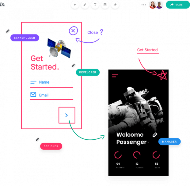 Invision erlaubt auch Diskussionen direkt am betroffenen Designelement. (Screenshot: Invision)