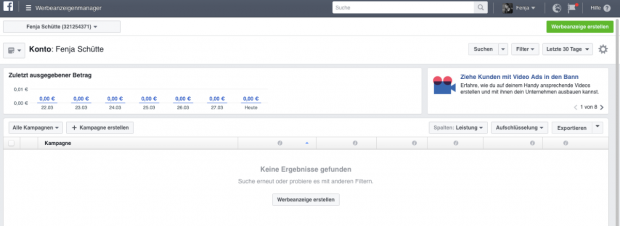 - [Unternehmen] – [Zielsetzung] – [Budgetrahmen] auf Kampagnen-Ebene