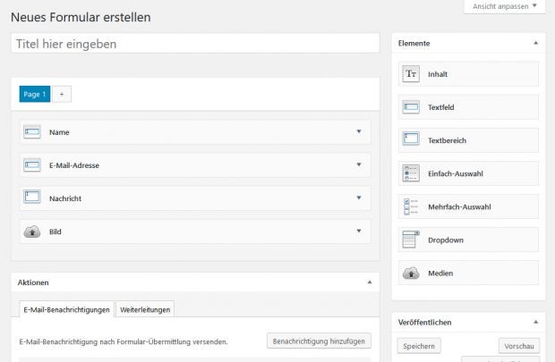 Formulare für WordPress umsetzen mit dem Ninja-Forms-Plugin. (Screenshot: eigene Installation)