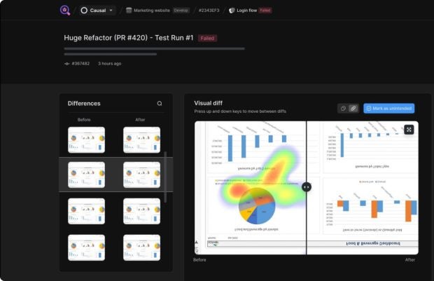 Meticulous führt automatisch Ende-zu-Ende-Tests durch. Etwaige Änderungen an der UI werden auf verschiedene Arten dargestellt und sollen Unterschiede in Sekunden ersichtlich machen. Die Macher:innen des Tools versprechen dadurch eine enorme Zeitersparnis.