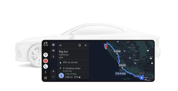 Auch Android Auto erhält ein wenig Aufmerksamkeit: E-Fahrzeuge mit Android Auto können Echtzeitinformationen über die Batterieladung mit Google Maps teilen. Das soll das Fahren von E-Autos erleichtern, da fortan die ungefähre Batterieladung bei Ankunft am Ziel geschätzt werden könne. Zudem sollen in Maps Ladestationen auf der Strecke und die ungefähre Ladedauer angezeigt werden.