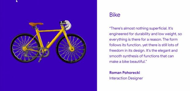 Für Interaktions-Designer Roman Pohorecki ist das Fahrrad beispielhaft gut gestaltet. Er sieht am Zweirad nichts nur oberflächlich Nützliches. Alle Bauteile hätten eine Bedeutung für das Produkt. Insofern würde beim Bike Minimalismus umgesetzt. Dennoch bestünden für den Designer viele Freiheiten hinsichtlich des konkreten Aussehens.