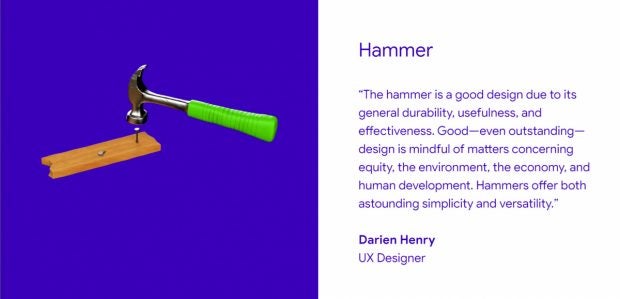 UX-Designer Darien Henry nennt den Hammer als Beispiel guten Designs. Er sei nicht nur lange haltbar, sondern auch eindeutig nützlich und im Einsatz effektiv. Dabei sei die Gestaltung einfach, die Verwendung dennoch vielseitig.