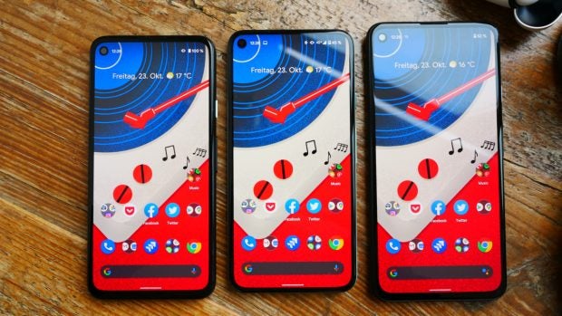 Größenvergleich: Pixel 4a vs. Pixel 5 und 4a 5G. (Foto: t3n)