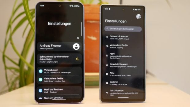 Die Einstellungen beim Samsung Galaxy A54 5G und beim Google Pixel 7a. (Foto: t3n)