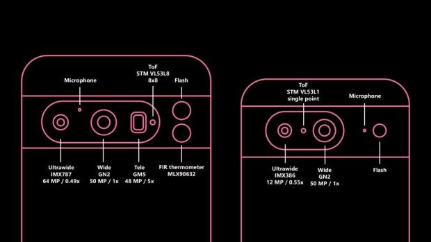 | Hauptkamera | Triple-Kamera: – 50 MP Octa-PD-Weitwinkelkamera 1,2 μm Pixelbreite f/1.68 Blende 82-Grad-Sichtfeld 1/1,31″ Bildsensorgröße; – 48 MP Quad-PD-Ultrawide-Kamera mit Autofokus 0,8 μm Pixelbreite f/1.95 Blende 125,5-Grad-Sichtfeld Objektiv-Korrektur; – 48 MP Quad PD telephoto camera 0.7 μm pixel width f/2.8 aperture 21.8-degree field of view 5x optical zoom Super Res Zoom up to 30x | Dual-Kamera: – 50MP Octa-PD-Weitwinkelkamera 1,2 μm Pixelbreite f/1.68 Blende 82-Grad-Sichtfeld 1/1,31″ Bildsensorgröße Super Res Zoom bis zu 8x; – 12-MP-Ultraweitwinkelkamera mit Autofokus 1,25 μm Pixelbreite f/2.2-Blende 125,8-Grad-Sichtfeld Objektiv-Korrektur | Triple-Kamera: - 50 MP Weitwinkel (Samsung GN1), Pixelgröße: 1,2 μm, Blende: ƒ/1.85, Sichtfeld: 82°, Bildsensorgröße: 1/1,31"; - 12 MP Ultraweitwinkel (Sony IMX381), Pixelgröße: 1,25 μm, Blende: ƒ/2.2, Sichtfeld: 126°, Objektivkorrektur - 48 MP Telezoom (Samsung GM1), Pixelgröße: 0,7 μm, Blende: ƒ/3.5, Sichtfeld: 20,6°, 5x optischer Zoom, 30x Super-Resolution-Zoom | Dual-Kamera: - 50 MP Weitwinkel (Samsung GN1) mit 8x Super-Resolution-Zoom, Pixelgröße: 1,2 μm, Blende: ƒ/1.85, Sichtfeld: 82°, Bildsensorgröße: 1/1,31"; -12 MP Ultraweitwinkel (Sony IMX381), Pixelgröße: 1,25 μm, Blende: ƒ/2.2, Sichtfeld: 114°, Objektivkorrektur |