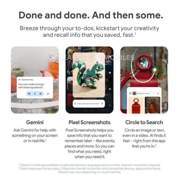 Googles Pixel 9 (Pro) wird einem Leak zufolge zahlreiche neue und vertraute KI-Funktionen erhalten. (Bild: Onleaks)
