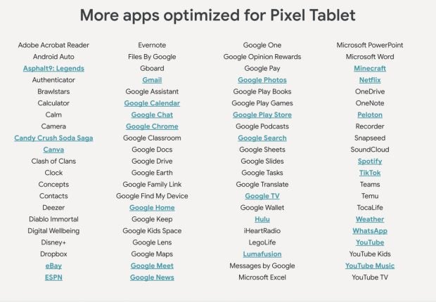 Diese Apps sind laut Google für das Pixel Tablet optimiert. (Bild: Google)