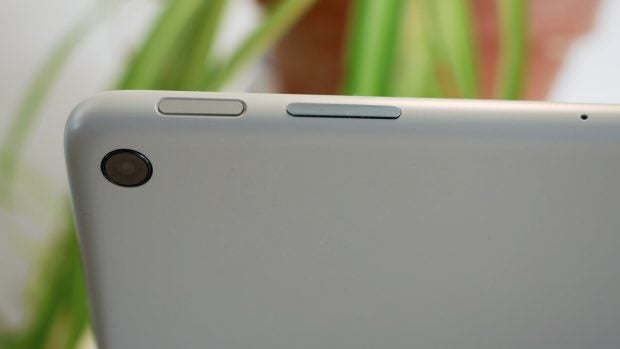 Auf der langen Seite rechts oben befindet sich neben der Lautstärkewippe der Powerbutton, in den ein schnell reagierender Fingerabdrucksensor integriert ist. Die vier ins Gehäuse eingelassenen Lautsprecher produzieren einen eher mittelmäßigen Sound mit etwas zu stark betonten Höhen, die bei hoher Lautstärke dazu tendieren, zu scheppern. Beim Sound des Tablets ist noch Luft nach oben, die Verarbeitung ist aber ausgezeichnet.